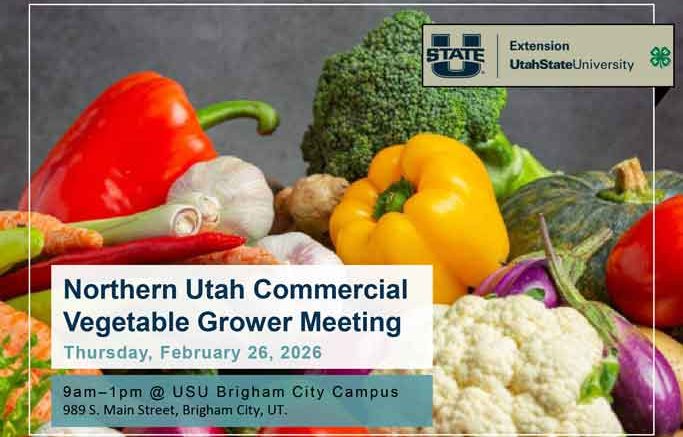 Utah State University Extension is holding their 2026 Commercial Vegetable Grower Meeting on Thursday, February 26, 2026, starting at 9:00 a.m. The meeting will take place at the USU Brigham City Campus Auditorium, located at 989 S. Main Street, Brigham City.