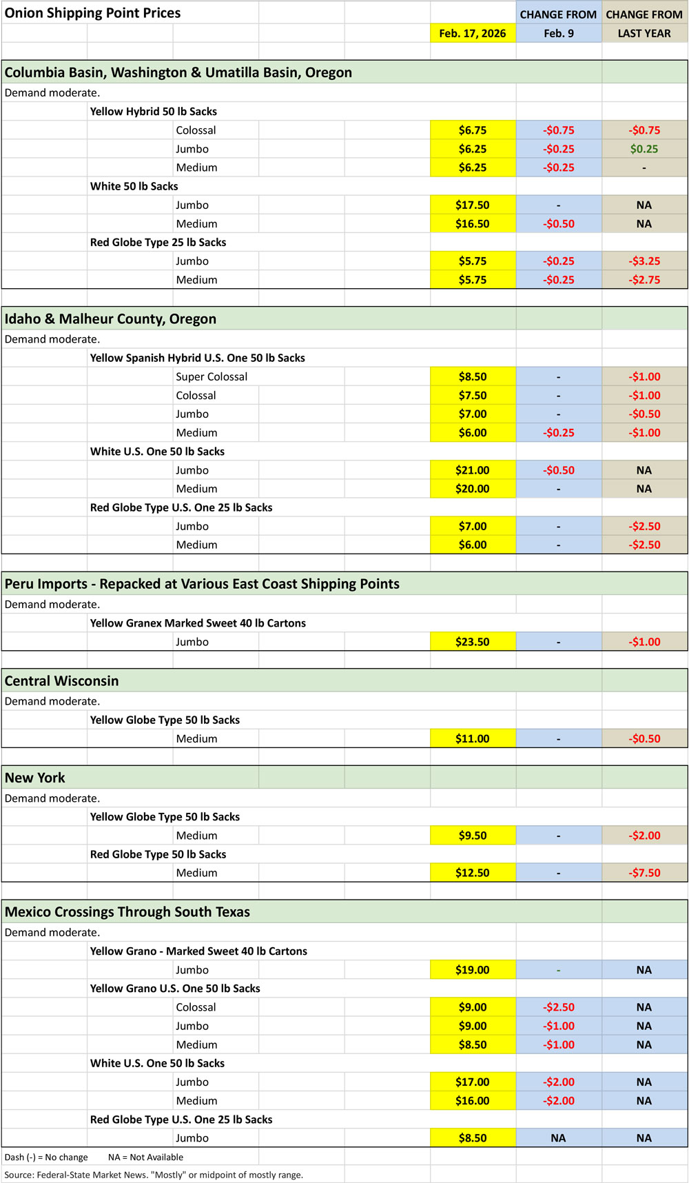 Yellows and whites from the same area dropped an average of $1.70 in the last week.