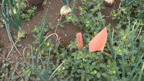 This weed emerges later in the summer, usually after onions have established (Photo 1). The seeds of this weed are contained in spiky burs (Photo 2). What is this weed? And what can be done to control it?